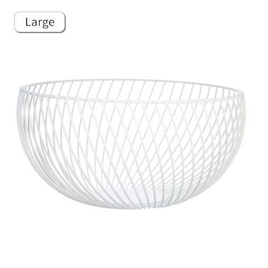 - The product is mainly used for storing fruit, snacks, candy, etc. Made of metal wire with powder coating finish,it presents a minimalist look and allows air to flow around the fruit, and has no sharp edges or points to bruise the fruit. It is a basket but also a decor to your house.