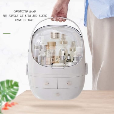 - <p>[Large Organizerfor Makeup and Cosmetic tools ]: large open sapce and three drawers,Keep all your cosmetics, jewelry or hair accessories neat, organized and arm’s reach. Featured with carrying handle, convenient to remove.<p>[Upgraded Design]:Gorgeous white finish decorated with clear box dustproof and waterproof lid, fit for vanity, bathroom counter or dresser, the makeup case will stand out wherever you place it for its neat and innovative look, bringing elegant glamour to every lady.<p>[High-grade Materialy]: Made of Nontoxic ABS plastics, a high quality shatter resistance safeguards against injury and damage. It is thicker and more durable than the typical acrylic makeup storage cases, jewelry boxes, and organizers.<p>[Perfect Gift Item]: Multi-Function makeup organizer for your needed, bathroom, bedroom, dressing room, toilet, table,countertop. The organizer can be appreciated at any age and at any stage of life, Great gift for mother, friends or daughter ect.<p>[No Need to Assemble]:100% satisfaction guarantee,If you are not satified with your purchase- if it breaks OR damaged in shipping, simply let us know and we will either replace it or refund your money !<p>GIVE YOUR COSMETIC A HOME! Handle installationEasy to be assembled and disassembled according to the User Manual, DIY the makeup organizer. Two-way flip coverTwo-way flip cover makes it more easy and convenient to storage and take cosmetic. WATER-PROOF, DUST-PROOF and MOISTURE-PROOFGreat giftGreat gift idea for Christmas, New Year, Valentine’s Day, Mother’s Day, birthdays, and many other holidays.Multi-FunctionMulti-Function revolving makeup organizer for your vanity, bathroom, bedroom, dressing room, table,countertop and desk.Thicker and More DurableThicker and more durable than the typical acrylic makeup storage boxes, jewelry cases, and organizers.Portable Large Capacity Beauty Cosmetics & Makeup Organiser Storage Box with Transparent Top Storage Section & 3 Drawer Storage Trays.The integrated handle makes this caddy practical and portable for beauty to go at times and locations to suit you.Material: AcrylicColor: Show in pictureSize: 32.525.523cmPackage Includes:1 * Multi-function dust-proof cosmetic caseApplicable scene: Nail shop, beauty salon, family, hotel, dormitory, travelEfficacy: High capacity, portable, cosmetic storageDue to manual measurement, there may be a 1-3cm error.About color:Due to lamp light, display color deviation, personal understanding of different colors, the object might exist some color photos, in this problem is not one of the quality problems of the goods, the final color with the actual goods should prevail.Return Policy:If you have any question,please contact us before refunds and negative feed back.We will provide the satisfied service. Thank you for your understanding.