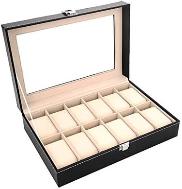 Generic Wood Material Black 12 Watch Jewelry Box.