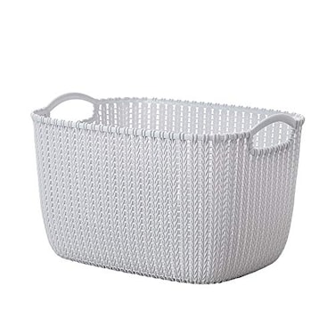Home Storage Basket, Bathroom Weaving Plastic Storage Baskets Bins Organizer with Handles -LIGHT GREY (SMALL)1PC