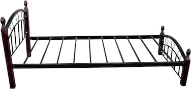 Karnak Metal Frame Bed With Wooden 4-Legs Single Black & Brown Dimension 90x190 Centimetres