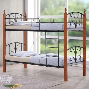 Karnak Wooden Steel Bunk Bed Double Decker Bunker Bed, Made Metal Steel & Solid Wood Heavy Duty Guard Rails Sturdy for Home, Baby Home, Apartment Studio Room, KB91 This Single Bunk Size width 90 centimeters & 190 Length centimeters bed gives you easy access to their sleeping space. Perfect for small space living, this single bunk bed takes up very little space and offers a bedroom for 2 people up and down. Made of solid wood & Metal. Steel Bed Frame with Wooden Bed size: 900 x 1900MM. Not Included Mattress