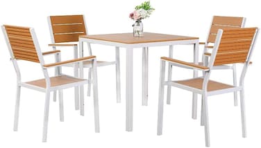 LANNY Set of 4 Armchairs bundle with 1 table for Garden Balcony Resteraunt Outdoor (78X78BROWN)
