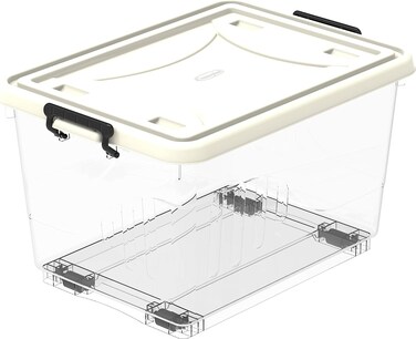 - Lavish 22L Clear Plastic Storage Box With Wheels & Lockable Lid, Off White