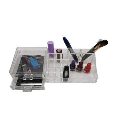 Made of high-quality acrylic, this clear acrylic organizer can give you all the elegance of glass without fragility. It's lightweight, clear, and more robust against impact. Exquisite, elegant and practical. Cosmetic organizer with separate compartments for all your essential cosmetics. Great for Storing Nail Polish Varnish, Lipsticks, Makeup sets, Brushes, Jewelry, Earrings. Perfect for acrylic organizing office supplies on your desktop, toiletries in your bathroom, jewelry and makeup on your vanity dresser. Keep your cosmetics neat and tidy. Acrylic makeup organizer stands storage cosmetic drawers’ organizer. it will be the perfect gift for friends and relatives on birthdays, parties, weddings, anniversaries, Mother's Day or daily surprises.