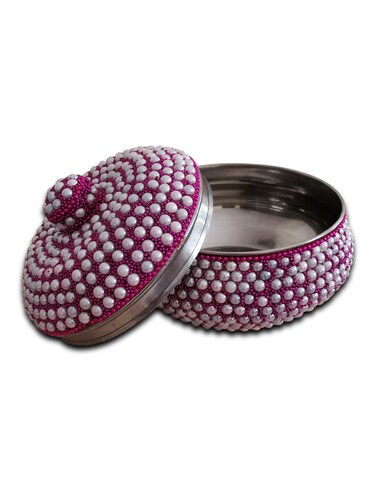 - A pearl beaded jewel case handmade jewelry box is a decorative and ornate container used for storing and displaying various types of jewelry, not just rings. This type of jewelry box is handcrafted and often adorned with pearl beads, giving it an elegant and luxurious appearance. Here are some key features and details of such a jewelry box: Handmade Craftsmanship: These jewelry boxes are typically handcrafted by skilled artisans who pay close attention to detail. The handmade aspect adds a personal and unique touch to each box. Pearl Beading: The box is decorated with pearl beads, which can be real pearls or faux pearls, depending on the design and price. The pearl embellishments add a touch of sophistication and luxury to the box's appearance. Versatility: Unlike ring-specific boxes, a jewelry box can accommodate a variety of jewelry items, including rings, earrings, necklaces, bracelets, and other small accessories. Interior Compartments: Inside the box, there are often multiple compartments, drawers, or trays to help organize and separate different types of jewelry. This ensures that your jewelry remains tangle-free and easy to access. Materials: The jewelry box is usually crafted from high-quality materials to protect and display the jewelry items stored within. Luxury Presentation: These boxes are designed to provide an elegant and decorative way to store and showcase your jewelry collection. They can be placed on a dresser or vanity as a stylish decor piece. Customization: Some pearl beaded jewelry boxes may offer customization options, allowing you to choose the box's color, type of pearls, or even have it engraved with a special message or your name.