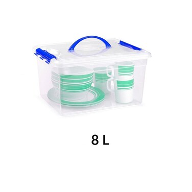 Plastic Box with Clip & Handle - 8L - Blue Great organizer boxes. You can store whatever you want in them, they are very practical and you can carry them around. Ideal for toys and stationery.