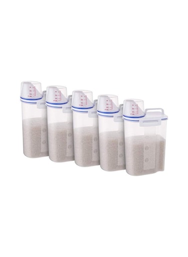 Rubik - 5-Piece Rice And Cereal Storage Container With Measuring Cup Set Blue/Clear 30X18X12Centimeter