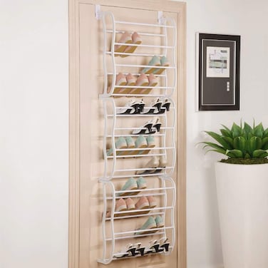 Neatly stores up to 36 pairs of shoes and maximizes unused storage space