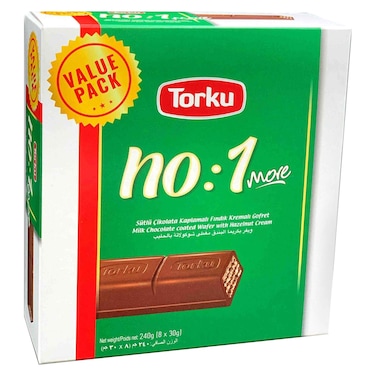 Torku No: 1 More Milk Chocolate Coated Wafer with Hazelnut Cream 30g Pack of 8