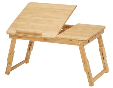 Foldable Wooden Laptop Stand, Adjustable Bamboo Laptop Table Sofa Bed Office Laptop Stand Holder Breakfast Serving Bed Tray, Adjustable Viewing Angle, Cup Holder (55 * 35cm)