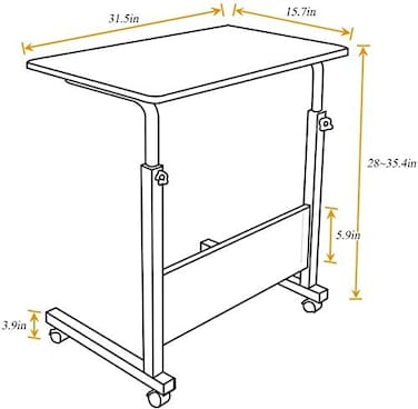 - <p>【Durable Construction】Our desk cart, the plate is made of solid wood particle pressing which is E1 grade environmental wood.The tube is heavy-duty and powder-coated metal materials, which ensures stability and durability.<p>【Adjustable height】:Dimension 31.5L 15.7W 28-35.4H inch. One manual-lock knob on each side easily enable quick changes in height.The height could be adjustable from 28-35.4inch(71-90cm), to meet the different heights needs<p>【Movable & Lockable】: There are four casters and two of them are lockable, allow you moving anywhere as you wish,and locked make it sturdy.<p>【Multi-functional Laptop Desk Cart】Our desk cart is widely applied in office or home as a perfect laptop table or living room furniture for its creative work area. Quick and easy assemble, all hardwares/tools are included<p>【Great Customer Service】: Do not worry about risk of buying furniture online, if you have any problem about the product, we dedicated customer service are always here for you.<p>Color:White Maple-31.5 inches<p>Computer Student Laptop Desk Height Adjustable Wooden Laptop Table Computer Standing Desk with Tablet iPad Mobile Workstation with Wheels