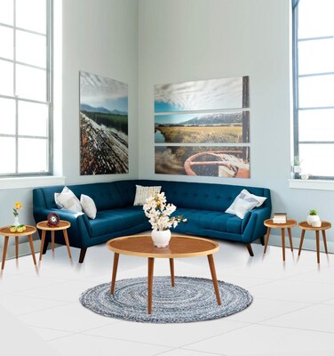 The Melike Coffee Table is a stylish and functional piece of furniture that is perfect for any living room. With its sleek design and versatile functionality, it is sure to complement any decor. The set includes a coffee table and four nesting end tables that can be easily tucked away when not in use, making it ideal for smaller spaces.
