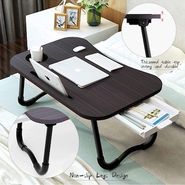 Lushh laptop deskFolding Bed Table Laptop Desk with iPad and Cup Holder Adjustable Lap Tray Notebook Stand foldable watch moveiies -Black