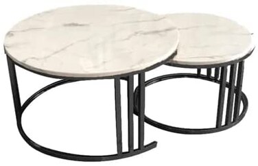 Yulan Modern Coffee Table, Couch Table Round Coffee Table Set Of 2 Modern Nesting Coffee Tablewith Sturdy Metal Frame Easy Assembly, White (White) 520