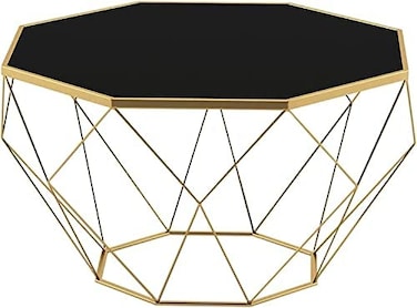Yulan Octagonal Shape Coffee Table With Black Tempered Glass Top And Gold Finishings (90X50) 632