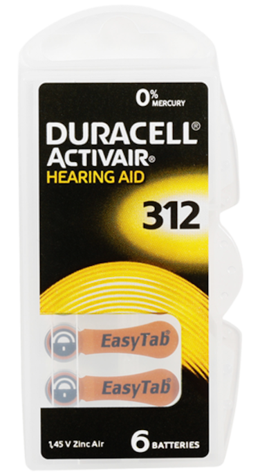 Duracell Activair Hearing Aid Battery Size 312 - Pack of 6 Batteries