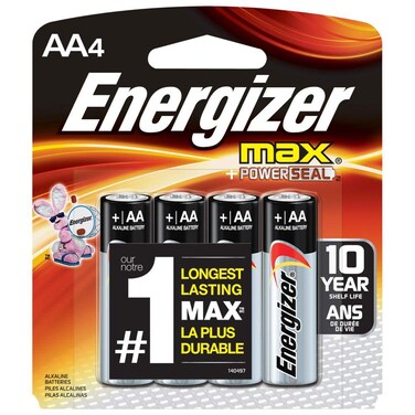 Energizer - 4-Piece Max AA Alkaline Battery Set Silver/Black