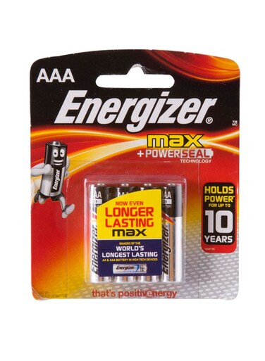 Energizer - 4-Piece Max AAA Alkaline Battery Set Silver/Black