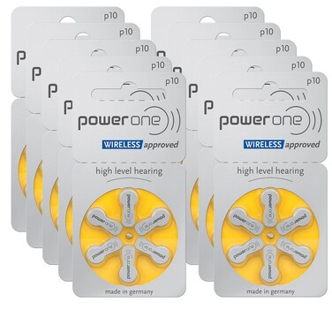 PowerOne (Size 10) Wireless Approved 1.45V Hearing Aid Batteries - 60 Batteries. Made in Germany