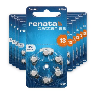 Renata (Size 13) Zinc-Air 0%Mercury 1.45V Hearing Aid Batteries - 60 Batteries. Made in Germany