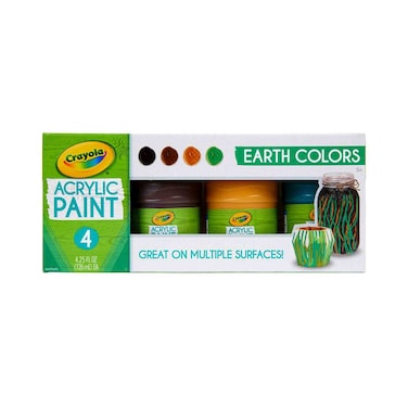 - Crayola Multi-Surface Acrylic Paint is perfect for your DIY crafts, kids' school assignments, and almost any art projects. This versatile craft paint works on multiple surfaces like plastic, wood, glass, and canvas. Our Earth Color Paint Set includes 4 (4 oz) Acrylic Paint Bottles inspired by Earth color tones.