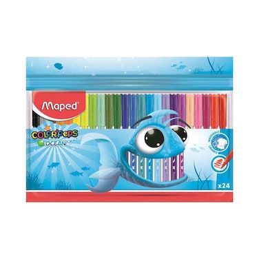 The Maped Color'Peps Ocean Felt Tip Pen set includes 24 vibrant and long-lasting pens.