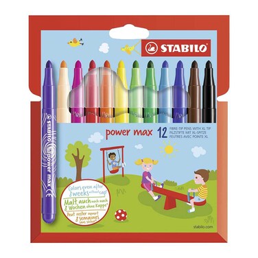 - The Stabilo power max is fibre-tip pen with a colour-rich application that is ideal for children who sometimes forget to replace the cap