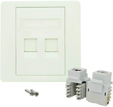 • A high quality network wall socket faceplate designed for RJ45 CAT5e and CAT6 cable installation. Package Contents: 2 port network plate with 2 keystone jacks.