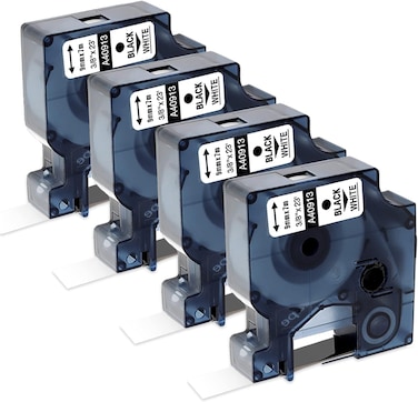 - 4 Pack Label Replace compitable labels for DYMO D1 Label Tape Refill 40913 9mm x 7m Black on White, S0720680 Standard Label Maker Tape for LabelManager 160 210D 260P 450D