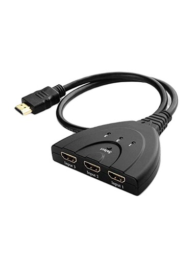 Generic 3 Port HDMI Switch Splitter with Pigtail Cable for TV Black