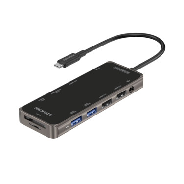 Promate USB-C Hub, 11-in-1 Type-C Multi-Port Adapter with 100W USB-C Power Delivery, 4K HDMI, 1080 VGA Port, RJ45 Port, AUX, TF/SD Card Slot and 4 USB Ports - PrimeHub-Pro