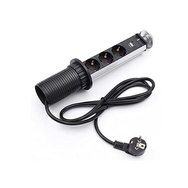 Table Socket Pop Up Pull Power Point Sockets with USB Charger Tabletop EU Electrical Plug Outlets for Office Kitchen 3 POWER & 2 USB 2.0