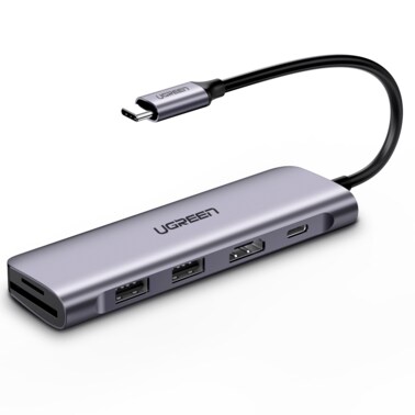 UGREEN 6 in 1 USB-C to 2 Ports USB3.0-A Hub + HDMI + TF/SD with PD Power Supply (Space Gray)
