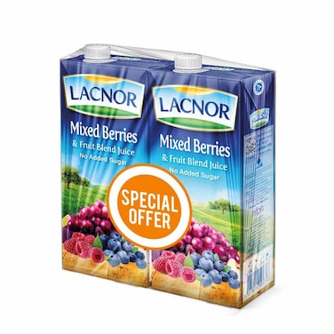 Lacnor No Sugar Added Mix Berry Juice, 1L Pack of 2