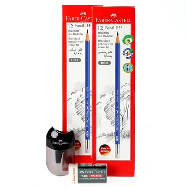 Faber-Castell 2 HB Black Lead Pencil 24 PCS with Sharpener and Eraser 1 PCS Set Multicolour