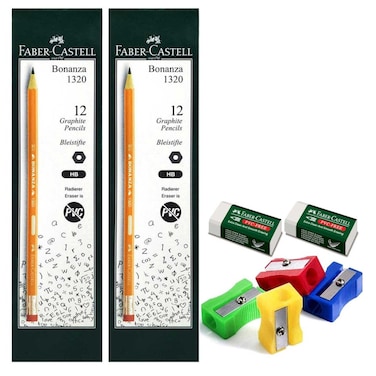 Faber-Castell Bonanza 1320 HB Pencil Set 24 PCS with Eraser 2 PCS and Sharpener 4 PCS Multicolour