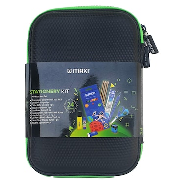 Maxi Double Zipper Pencil Case Stationery Kit Black