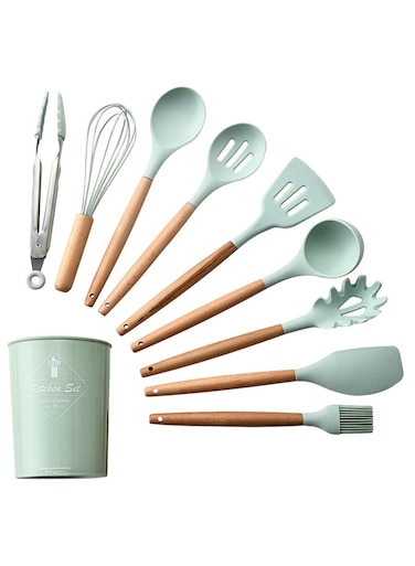 10-Piece Cooking Utensils Kitchen Set Green/Brown
