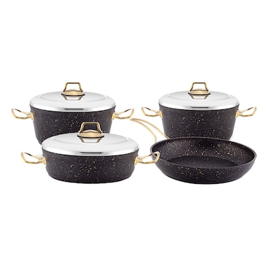 Home Maker Granite Cookware Set With Stainless Steel Lid Black And Gold 7 PCS