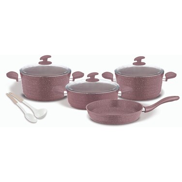 Home Maker Granite Cookware Set Rose Gold And White 9 PCS