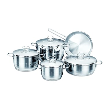 This set includes five different sized pots and pans, ranging from 3.2L to 2.2L, allowing you to cook a variety of dishes. The silver colour adds a sleek and modern touch to your kitchen decor.