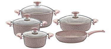 - OMS 9 Pcs Grey Granitec Cookware Set - Made in Turkey-3002