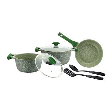 With its attractive green and black design, this cookware set is a must-have for any kitchen.