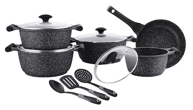 - Prestige Essentials 12 pc set Black Granite Non-Stick Aluminium