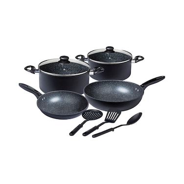 The Pyrex Elegance Cooking Set Black 9 PCS is a versatile and stylish cookware set that includes all the essential pieces for your kitchen.