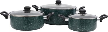 Royalford 6 Piece Blue Granite Cookware Set RF10243Granite Coated Aluminum Cookware Induction Base Glass Lid, Multicolor