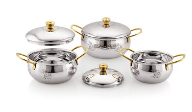 Designer Cooking Set of 3 with Gold Handles and Print