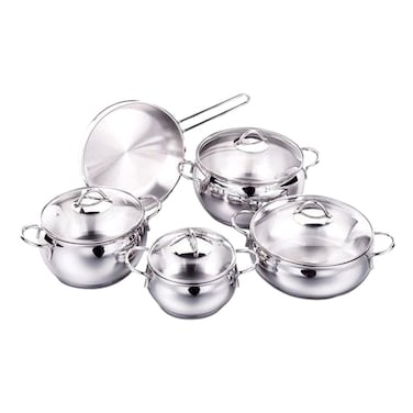 The Tobik Stainless Steel Cookware Set is a versatile and durable set that includes 9 essential pieces for all your cooking needs. Made from high-quality stainless steel, these pots and pans are designed to last for years. The set includes a variety of sizes, from small saucepans to large stockpots, making it perfect for cooking meals of any size.