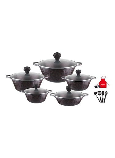 - Dessini 17-Piece Granite Saving Energy Aluminum Cookware Set Includes 1X 20cm, 1X 24cm, 1X 28cm, 1X 32cm, 1Xshallow Casserole With Lid 28cm, 7Xcooking Tools, Black